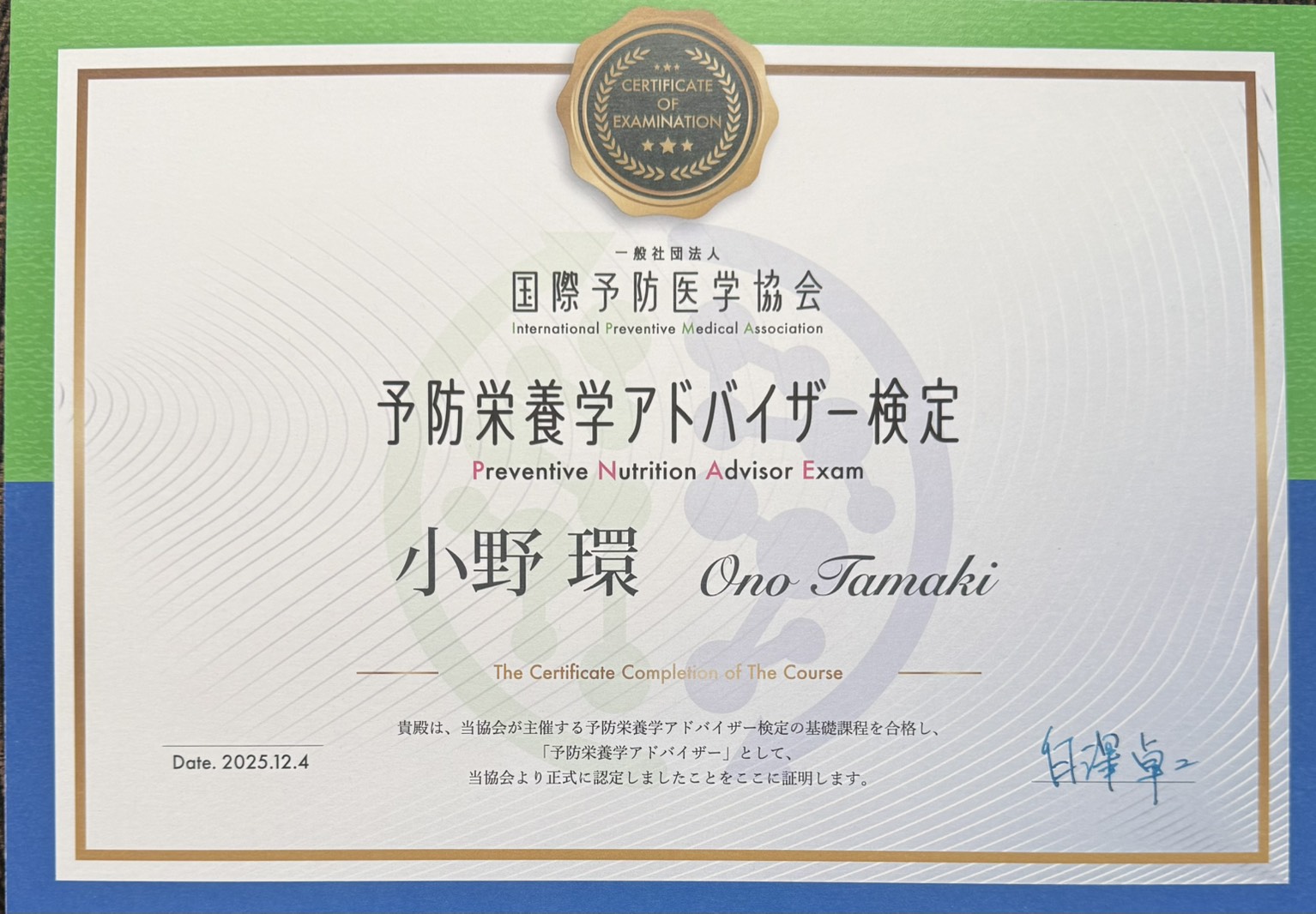 昨年、『予防栄養学アドバイザー』という資格を取得し、